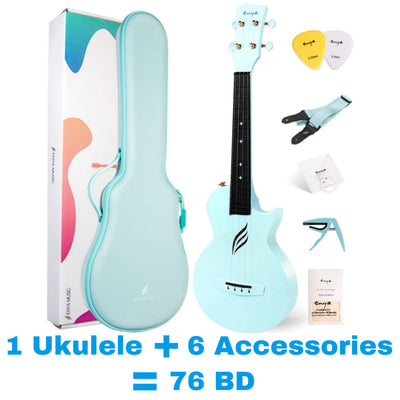Enya NOVA U Concert 23” Ukulele - Blue - Carbon Fiber Travel Ukulele - With Beginner Kit includes Case, Picks (2 pcs), Strap, Strings, Capo and Polish Cloth