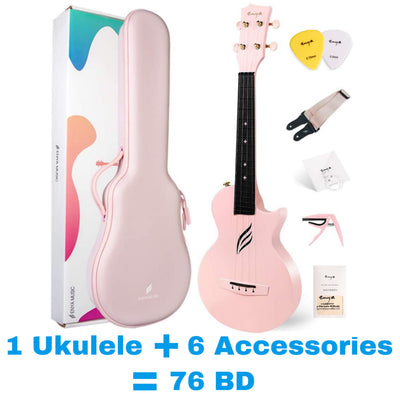 Enya NOVA U Concert 23” Ukulele - Pink - Carbon Fiber Travel Ukulele - With Beginner Kit includes Case, Picks (2 pcs), Strap, Strings, Capo and Polish Cloth